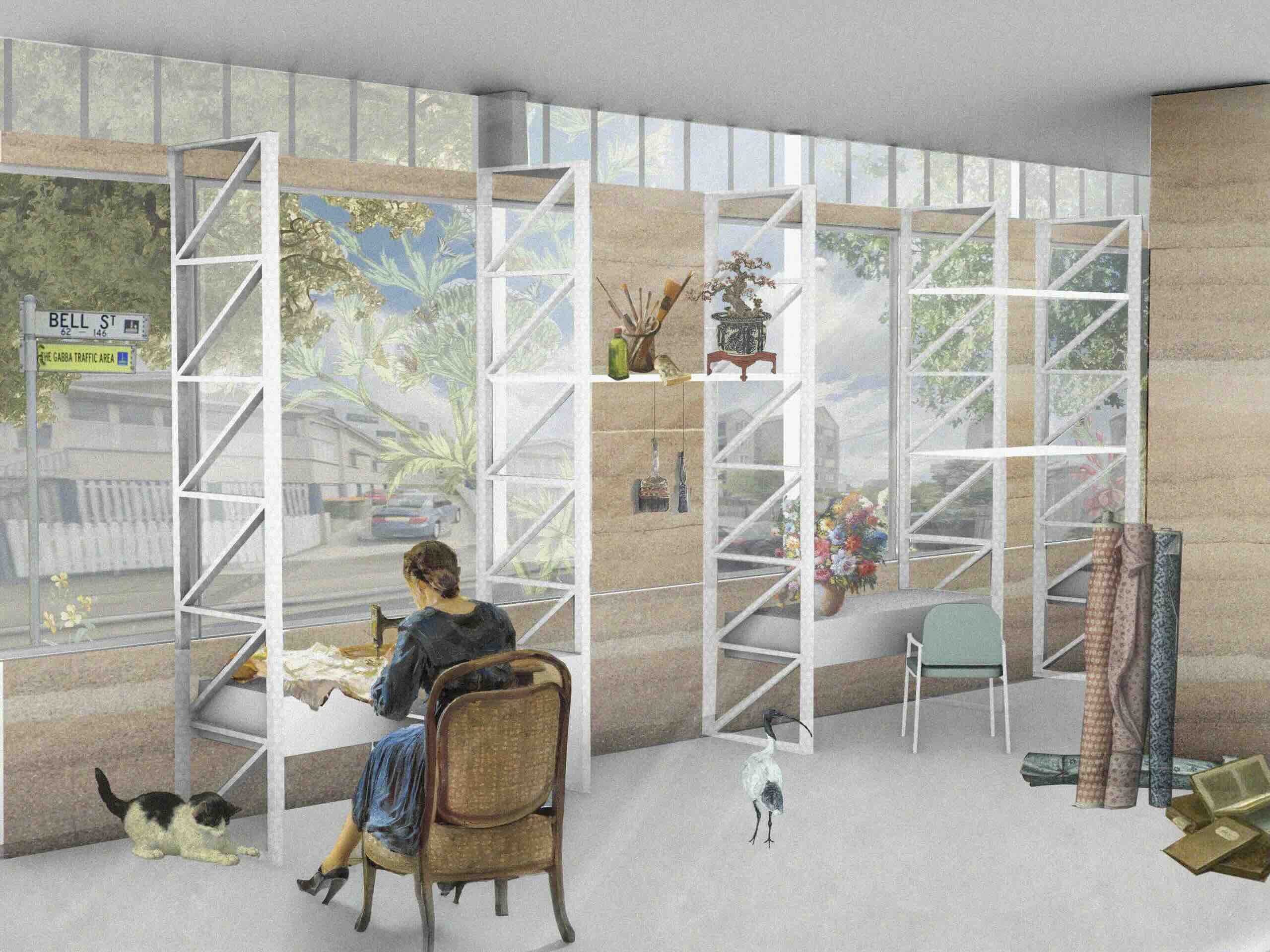 Innovation is integrated through hempcrete parti walls and a new social housing typology, which couples the apartment complex with a suburb library. Future resilience is ensured through adaptively reusing the existing building on site, and recycling materials through the hempcrete aggregate. However, resilience is not limited to sustainability. Social resilience is ensured through the creation of 'third spaces' and the integration of the public library. This promotes moments of interaction and community ownership.