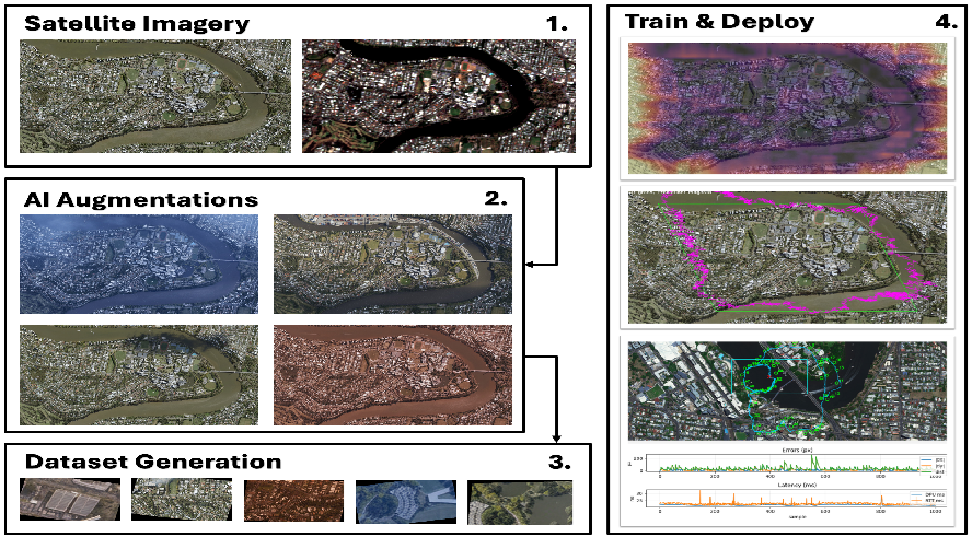 This project targets real time, on board, absolute localisation from a single image on low power embedded hardware. A convolutional neural network (CNN) maps a monocular frame directly to coordinates in a pre surveyed reference image, avoiding continuous feature tracking and cloud offload. The method is intended to complement inertial devices such as an inertial measurement unit (IMU) and a barometer by providing periodic absolute fixes that bound drift in an inertial navigation system. The goal is to enable reliable autonomy when satellite navigation cannot be trusted, while keeping latency and energy use within the strict budgets of small UAV platforms.