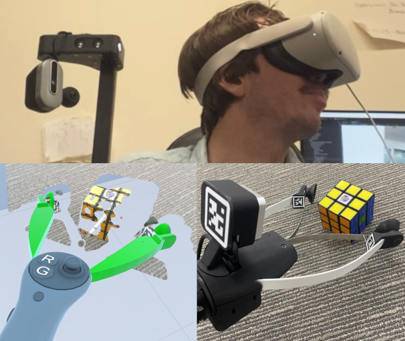 This project takes a step towards solving these challenging problems by enabling a human pilot to embody a robot through a virtual reality (VR) interface. The goals are 1) to understand how to best present the robot’s sensor data (camera, depth, lidar, proprioception) to the user so that they can fluently pilot the robot and 2) to map the user’s hand and arm movements to the robot’s end-effector. The project will make use of the Stretch Open Source Mobile Manipulator robot and the Meta Quest 2 VR headset.
